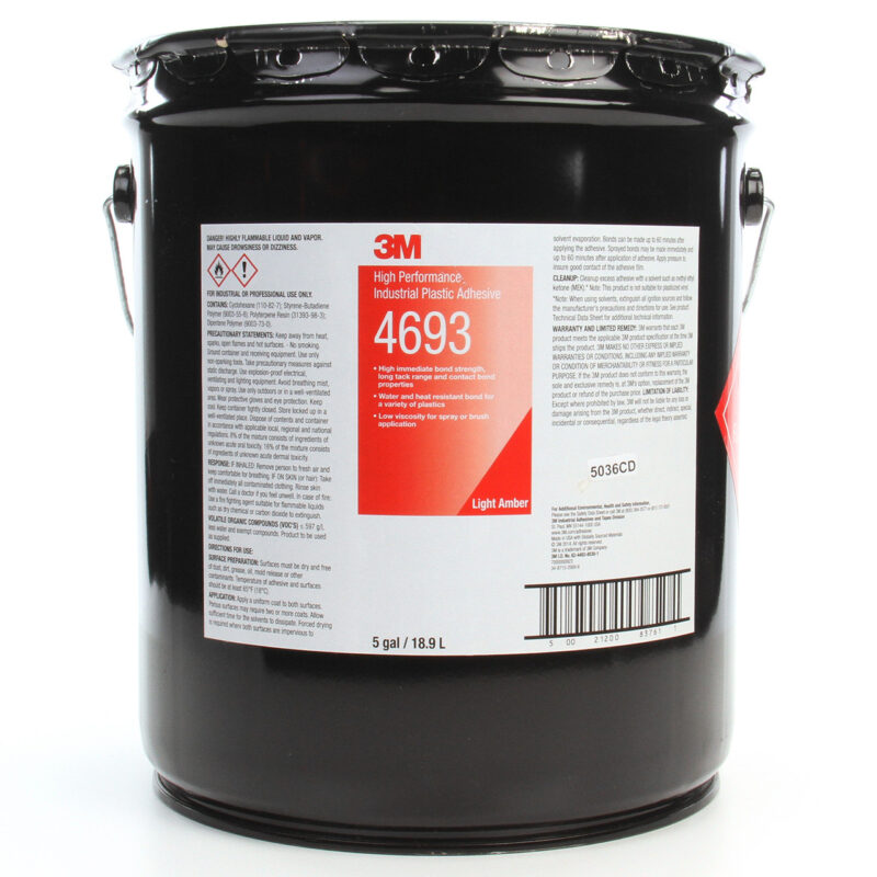 Keo dán nhựa công nghiệp hiệu suất cao 3M™ 4693 khô nhanh chóng với thời gian kết dính mở khoảng 20 phút. Các liên kết lắp ráp của nó được chứng minh là bền chắc trong khi chống lại thời tiết cũng như tác hại của nước và ánh nắng mặt trời. Ngoài ra, nó liên kết tốt với nhựa, mang lại độ bám dính lâu dài cũng như khả năng chống các sản phẩm tẩy rửa tốt.