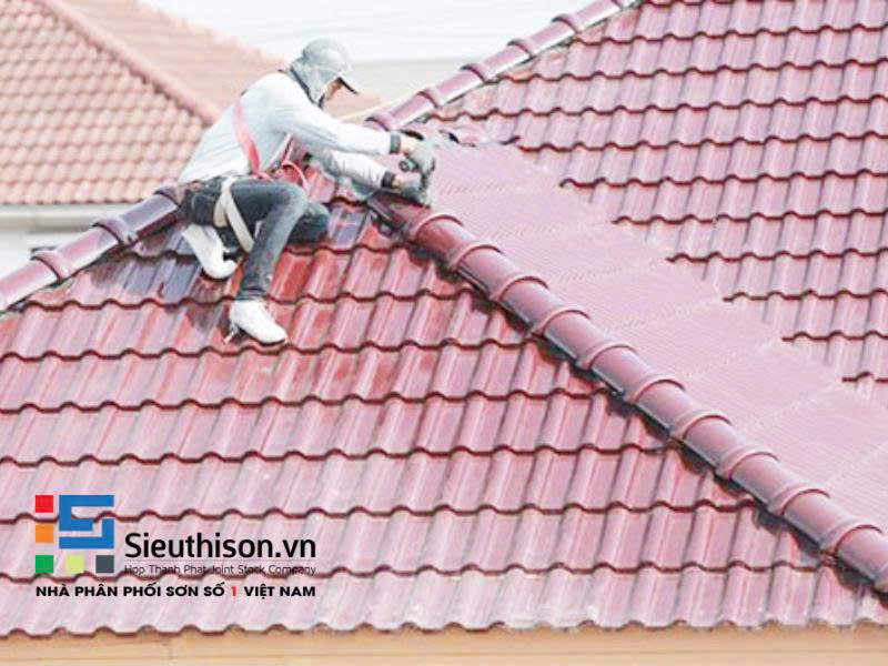 • Vệ sinh bề mặt mái ngói: Trước khi thi công, cần làm sạch hoàn toàn bụi bẩn, rêu mốc và các tạp chất để lớp sơn bám dính tốt.
