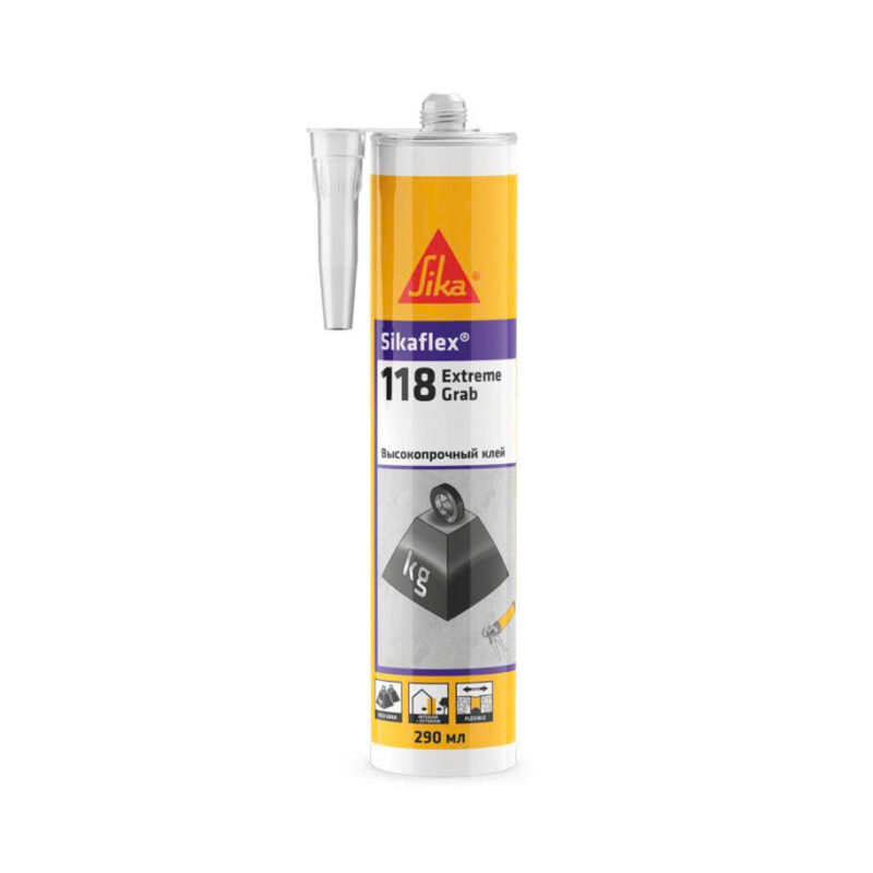Sikaflex‑118 Extreme Grab là keo/keo trám khe 1 thành phần dạng cartridge 290 ml, đặc biệt nổi bật với hiệu ứng bám dính mạnh ngay lập tức (high initial grab), cho phép gắn các vật nặng mà không cần cố định tạm thời. Sản phẩm thích hợp sử dụng trong nội thất và ngoại thất, kể cả môi trường khí hậu nóng và ẩm tróp.