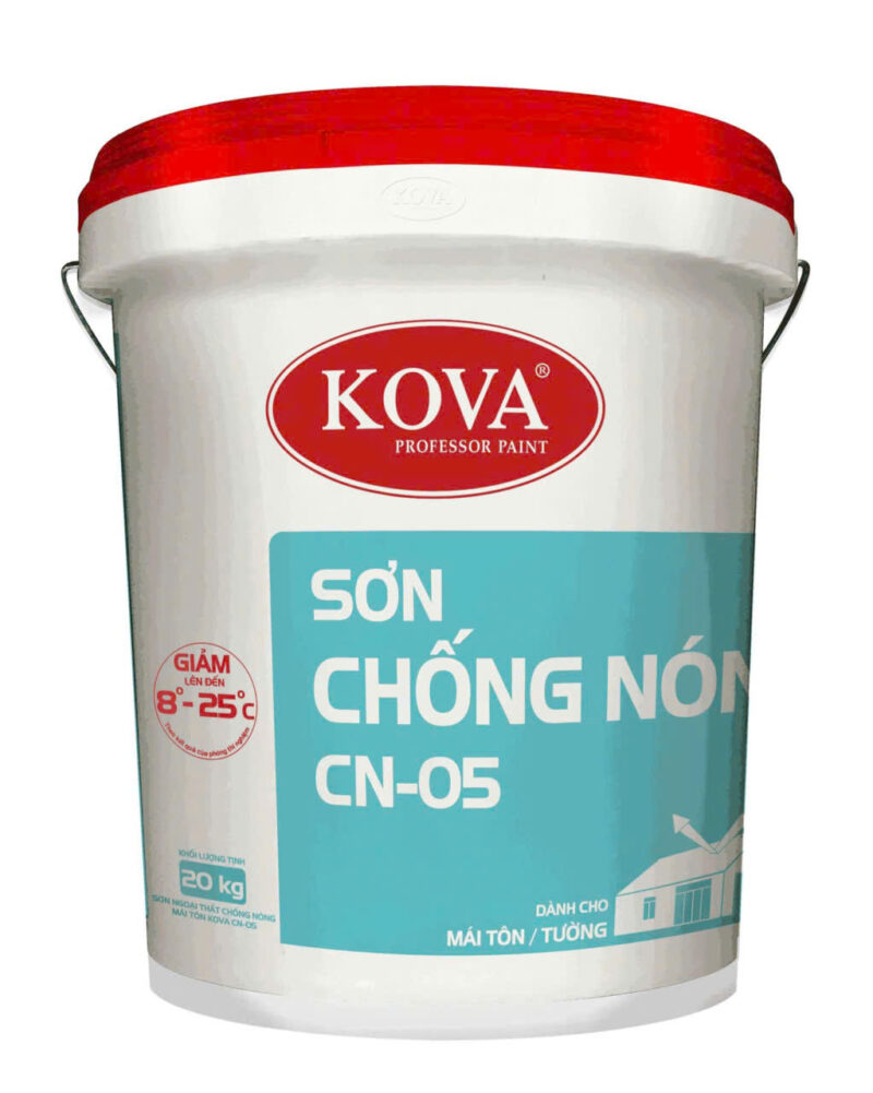 Sơn ngoại thất chống nóng đa năng KOVA CN-05 là sơn hệ nước một thành phần, giúp giảm đáng kể nhiệt độ bề mặt vật liệu khi chịu tác động của ánh nắng chứa hàm lượng tia UV cao.