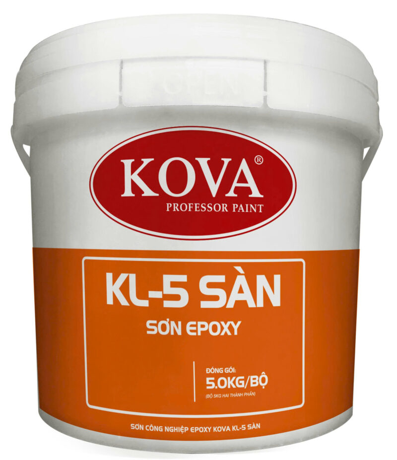 Sơn công nghiệp Epoxy KOVA KL-5 sàn là loại sơn Epoxy hệ nước 2 thành phần, dùng để phủ sàn xưởng công nghiệp, tầng hầm, bể nước, bể xử lý nước thải, bãi đậu xe, công viên nước, nhà máy thực phẩm, dược phẩm, bệnh viện, trường học,…