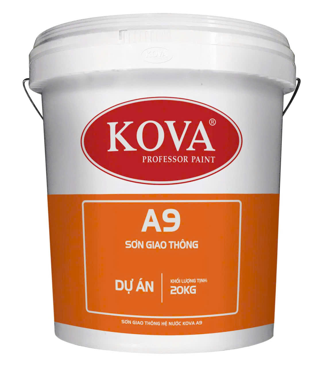Sơn giao thông hệ nước Kova A9 là loại sơn giao thông công nghệ tiên tiến hệ nước, gốc Acrylic biến tính Silicon tạo ra sơn giao thông có độ bền cao hơn hẳn sơn gốc Alkyd hệ dung môi hiện hành. Đặc biệt với đặc tính hệ nước và khả năng bám dính rất tốt (theo tiêu chuẩn Mỹ), sơn A9 đạt tiêu chuẩn để thi công cho đường băng sân bay và thực tế đã được sử dụng ở rất nhiều nhà xưởng, bãi đậu xe, sân bay tại Việt Nam, Lào.