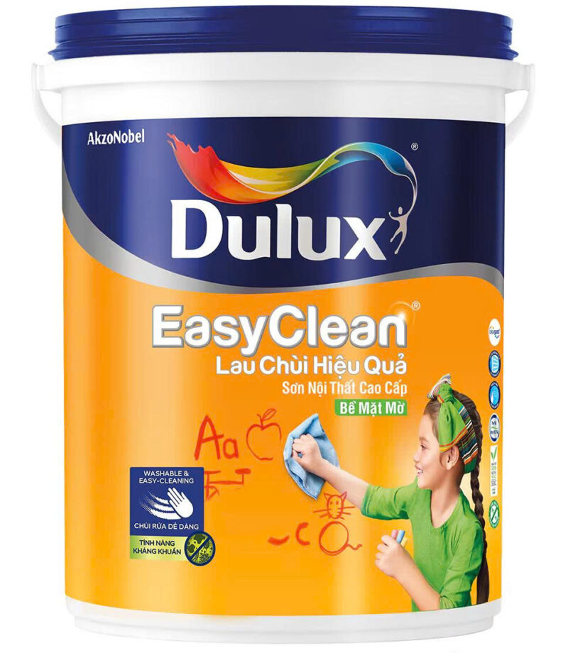 Dulux EasyClean lau chùi hiệu quả là sơn nội thất cao cấp giúp giữ tường nhà bạn luôn sạch đẹp hơn. Vết bẩn dễ dàng được lau chùi mà không ảnh hưởng đến màng sơn và công nghệ Colourguard giúp giữ màu sơn luôn tươi đẹp như mới.