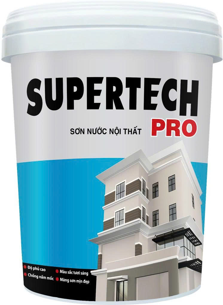 Sơn nước nội thất Supertech Pro Nội thất được làm từ nhựa nhũ tương chất lượng cao với màu sắc tươi đẹp, màng sơn mờ, bề mặt nhẵn mịn, độ phủ cao, chống nấm mốc. Sản phẩm không sử dụng APEO, Phooc-môn, chì và thủy ngân.