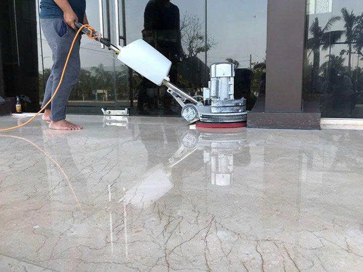 Bước 1: Mài và xử lý bề mặt sàn bê tông