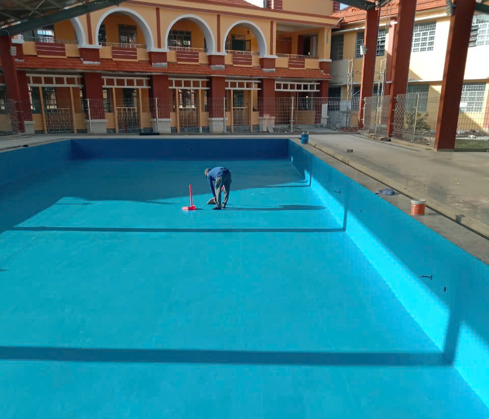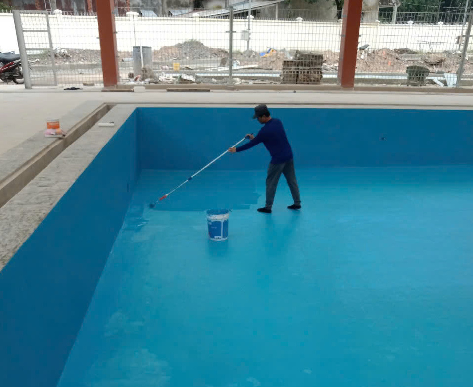 Đơn vị thi công Hợp Thành Phát sử dụng sơn composite CADIN để sơn phủ hồ bơi. Sơn composite CADIN kháng hóa chất là loại sơn composite 2 thành phần hệ lăn. Sơn có tính năng kháng ăn mòn với nhiều loại acid và kiềm. Được sử dụng để làm lớp hoàn thiện bảo vệ bề mặt sắt thép, sắt mạ kẽm, bê tông cho các nhà máy hóa chất, bể xử lý nước thải, bồn chứa hóa chất, tầng hầm để xe, hồ bơi trong nhà và ngoài trời.